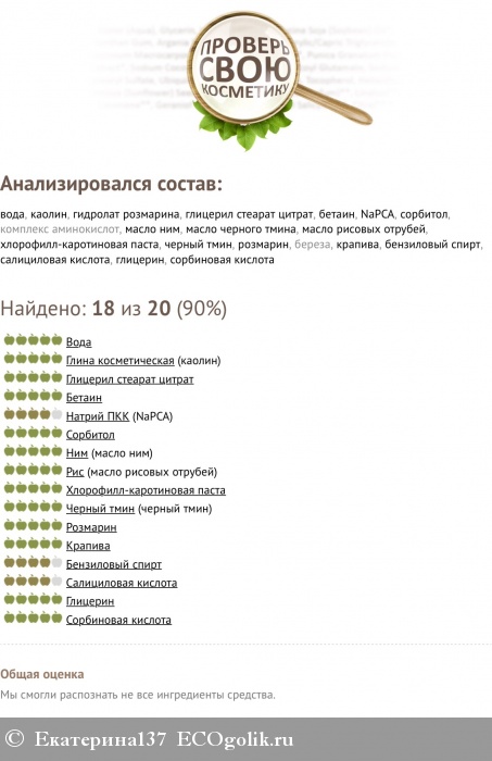 Проверка состава средства на Ecogolik не выявила все составляющие, в частности экстракт берёзы, но это натуральное органическое вещество и комплекс аминокислот, так как непонятно какие именно кислоты в него входят. Критичных ингредиентов не выявлено. Что позволяет считать состав натуральным.