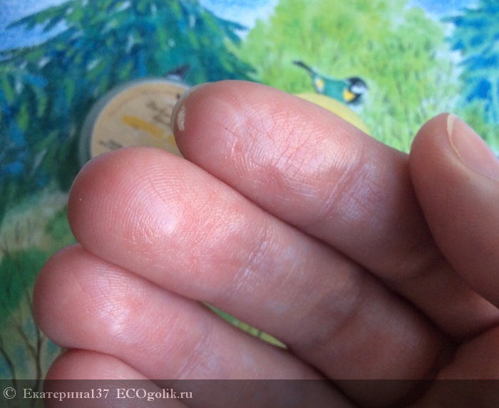 Вот так он набирается на палец, достаточно просто обмакнуть. Если взять много воска он не сможет как следует впитаться и будет так или иначе мешать вам.