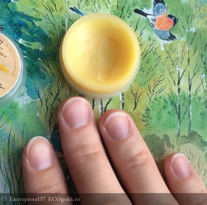 Состав натуральный, аромат у воска очень приятный лимонно-конфетный. Он жирненький конечно, но не как масло, достаточно немного мазнуть по нему и втереть это в кутикулу. Впитывается быстро, не пачкает все вокруг.