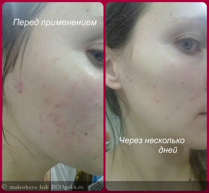 На фото видны высыпания, а также имелись небольшие пигментные пятна. За 2 месяца использования гидролата Граната я избавилась и от одного, и от другого. Приятным дополнением была свежая увлажненная кожа, приятная на ощупь и гладкая на вид.