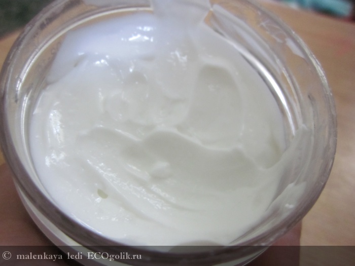 Конечно, если бы это был крем для лица, то такая упаковка мне бы не пришлась по душе и руками я бы туда лазить не стала. Использовала бы лопаточку, но ноги не лицо, поэтому без всякого зазрения совести я залезаю в баночку пальцем, беру нужное количество крема, а нужно его совсем немного, и наношу на свои не совсем «шелковые» ножки.