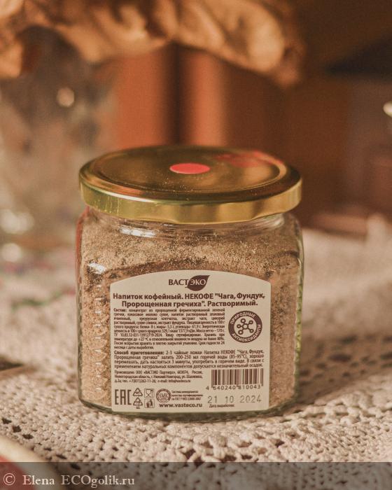 В прошлом отзыве я писала о напитке (НЕКОФЕ Чага и Овес ферментированный, кофейный растворимый) из новой линейки Некофе без ГХИ бренда ВАСТЭКО. В этом отзыве, о другом напитке, который я успела уже попробовать - НЕКОФЕ Чага, Фундук и Пророщенная Гречиха, кофейный растворимый.
