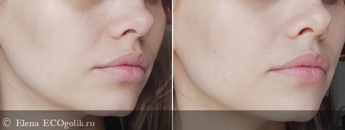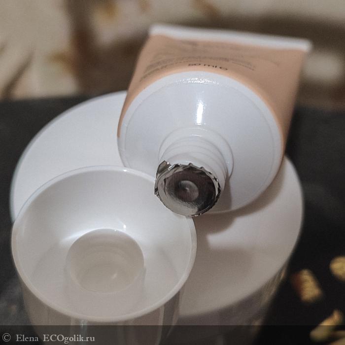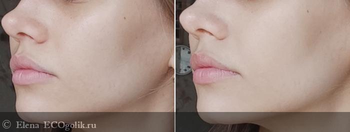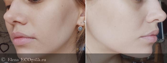 У крема есть несколько особенностей. Во-первых, распределять по лицу его надо быстро. Когда вы почувствуете, что он становится менее пластичным, нужно бросить его размазывать, а это, поначалу, может показаться неправильным решением. Почему? Пункт номер 2 - лицо (сначала) становится сильно белее! Возможно у вас не будет это заметно настолько сильно, но у меня кожа смуглая и внешний вид, сначала, очень странный.