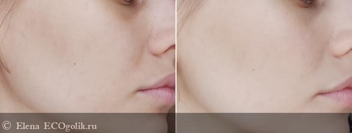 Если нанести не много крема, лицо становится сияющим здоровым блеском, возможно в креме есть какие-то мельчайшие отражающие частички, лицо освещается ровным сиянием. А если нанести побольше, то, крем перекроет чуть больше недостатков, но, в отдельных зонах ( под глазами и нос) желательно будет его припудрить. Или по всему лицу, в зависимости от желаемого эффекта (если хочется более матовой кожи). Пудра на него ложится прекрасно: нигде не залипает, распределяется отлично. Также, поверх крема можно нанести ещё один слой, для лучшего покрытия, распределяется он хорошо.