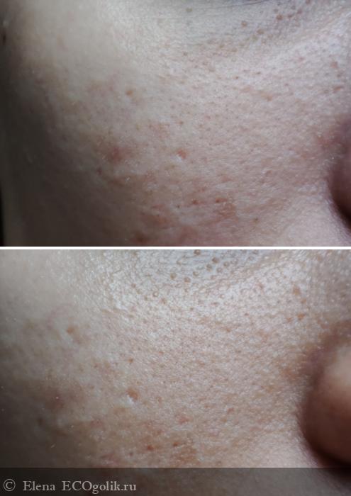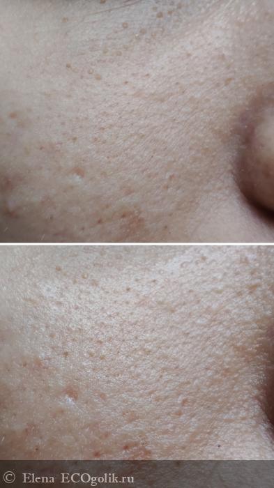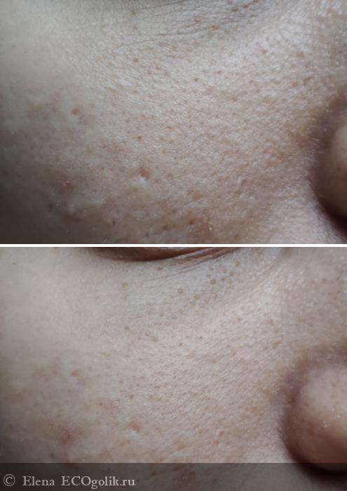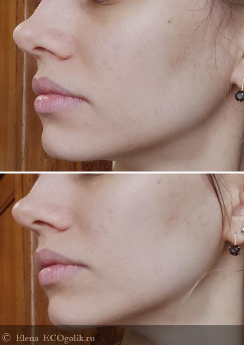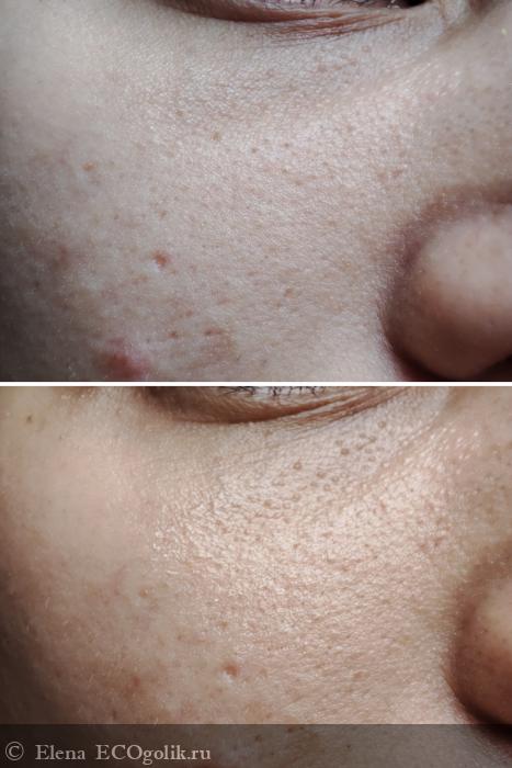 Также, флюид отлично работает с высыпаниями. У меня был большой неприятный прыщ, нанесла средство на ночь и утром воспаление, как будто, подсушилось и стало меньше, но без шелушений и ощущений сухости. Оно очень быстро прошло. Хотя на официальном сайте указана профилактика акне и воспалений, с существующим (с новенькими, не с теми, которых много и они долгое время) мне помогло.