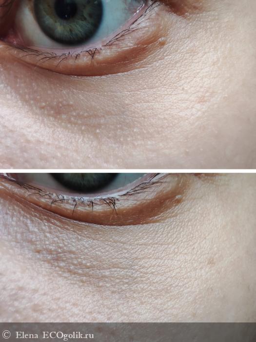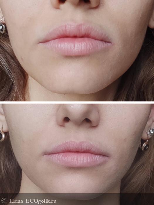 Отлично увлажняет кожу, при этом, как бы "припечатывая" шелушинки (после применения они уже визуально были чуть менее заметны и неприятных ощущений становилось меньше), но без ощущения липкости. Вокруг глаз средство было использовать так же приятно: текстура лёгкая, но питательная. И, самое главное, спустя время ежедневных использований, раздражения исчезли, а кожа как будто стала плотнее (особенно это было заметно там, где кожа шелушилась, там она была раздражена и, как будто, тоньше). Также, у средства отличные восстанавливающие свойства! Параллельно с ним я использовала другую сыворотку бренда, но уже от высыпаний. Пока наносила её на лицо, задумалась и средство попало на подбородок.