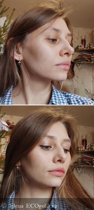 До / после (поверх хайлайтера + пудры нанесла ещё хайлайтер):