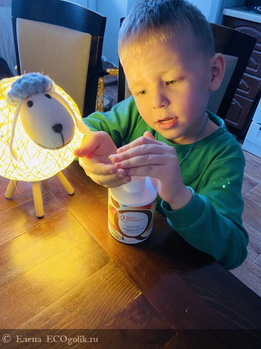 1. Упаковка. Баночка объёмом 300 мл, с удобным, исправно работающим дозатором. Такого объема средства хватит на долго, как для одного человека, так и для всей семьи. Красивая этикетка апельсинового цвета несомненно радует глаз на полочке в ванной.