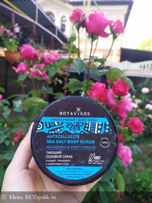 Вот и состоялось мое долгожданное знакомство с брендом Botavikos. И началось оно со скраба для тела. А именно с антицеллюлитного солевого скраба с макадамией и апельсином. Для меня это был вообще новый формат скраба - такой пастообразный продукт с абсолютно незаметными кристалликами соли. И цвет у него прикольный. В общем, серая пасточка.