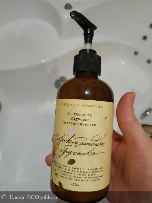 Начну с того, что знакома с данной маркой уже около года и испробовала на себе все шампуни, твердые и жидкие для своего типа волос. Но не так давно волосы покрасила и чтобы ухаживать за такими повреждёнными волосами решила перейти на серию шампуня+ кондиционер из серии "Глубокое восстановление". При первом применении сразу оценила крутой аромат средств, и крутую пену у шампуня. У меня на голове была практически шапка из пены (расход средства при этом был размером с грецкий орех). Сразу скажу, что шампунь на столько сильно промывает волосы, что они скрипят в руках, ну и как побочный эффект от такой тщательной смывки-волосы запутанные как мочалка. Но я считаю это норм, ещё раз подтверждает, что шампунь без силикона и другой химии. По этому я после шампуня, на влажные волосы наношу кондиционер этой серии и держу на волосах до 10 мин. Заметила, чем дольше держишь, тем более гладкий волос становится и при смывании кондиционера это сразу ощущается. Можно даже влажные волосы руками расчесать. Ну и основной эффект- волос легкий, гладкий и блестящий. Следующим планирую тестить маску для волос из этой серии.