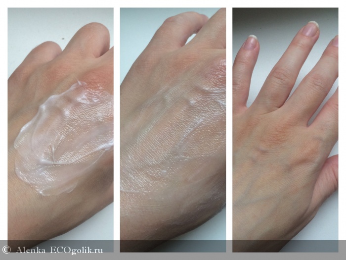 Я беру небольшое количество крема, распределяю его по ладоням и прохожусь ладонями по волосам, сверху вниз, как бы приглаживая их руками. На удивление, крем быстро впитывается волосами и не делает их жирными в виде сосулек. Впитывается очень быстро и волосы через минуту буквально возвращаются к своему обычному виду.