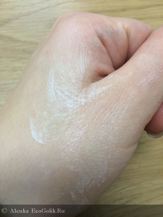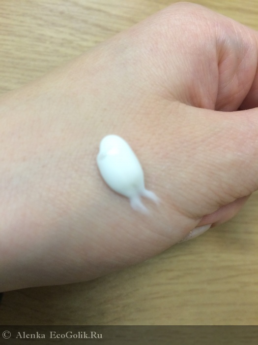 Быстро впитывается, не оставляя и следа. При этом крем достаточно легкий, не закупоривает поры и не оставляет жирного блеска.