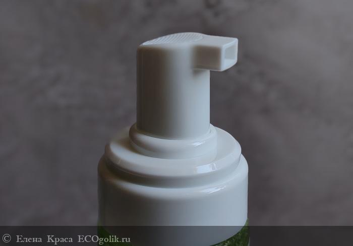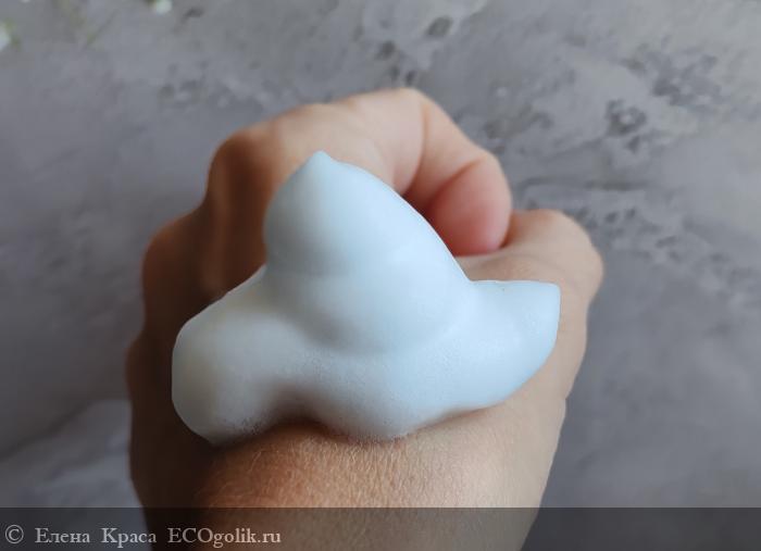 Пенка в флаконе выглядит прозрачной водичкой, а на выходе мы получаем нежную и воздушную пенку.
