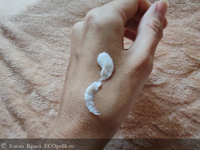 Крем сначала ложится довольно плотно на кожу, но под воздействием тепла начинает таять и мягко распределяется по коже.
