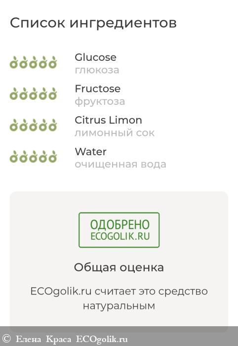 Состав: глюкоза, фруктоза, лимонный сок, очищенная вода.