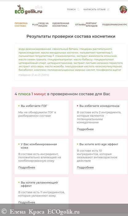 Благодаря сервису Plus, который предоставляет расширенные возможности при проверки состава, я узнала индивидуальные плюсы и минусы продукта. Плюсов не мало, в данном случае четыре. Минус один.