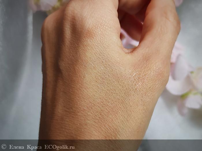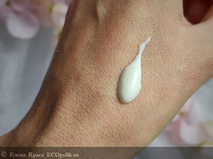 Крем имеет в меру жидкую текстуру, внешне напоминает флюид.