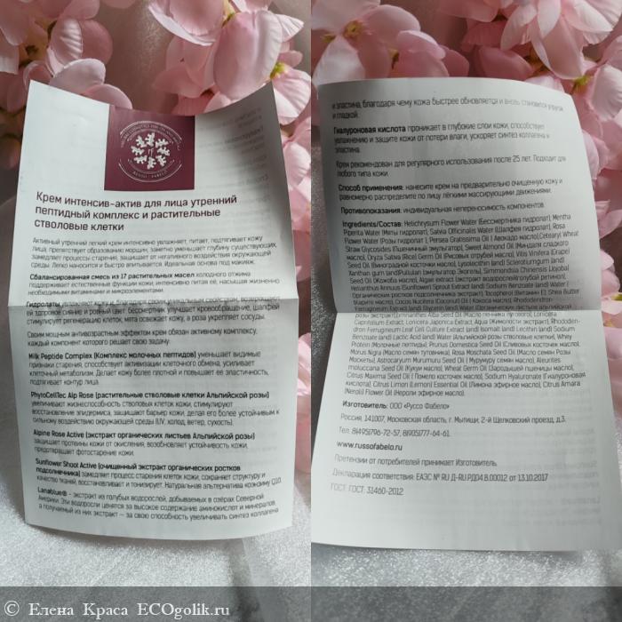 Горячо рекомендую к использованию крем интенсив-актив от Russo Fabelo особенно тем, кто перешагнул 35 - летний возрастной рубеж.