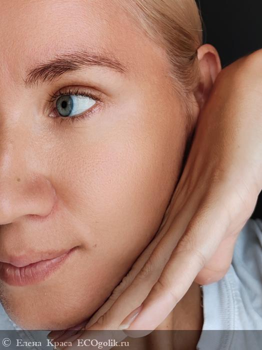 После полного впитывания присутствует незначительный блеск кожи. Но это не эффект "жирного блинчика." А ощущение напитанной и увлажненной кожи.