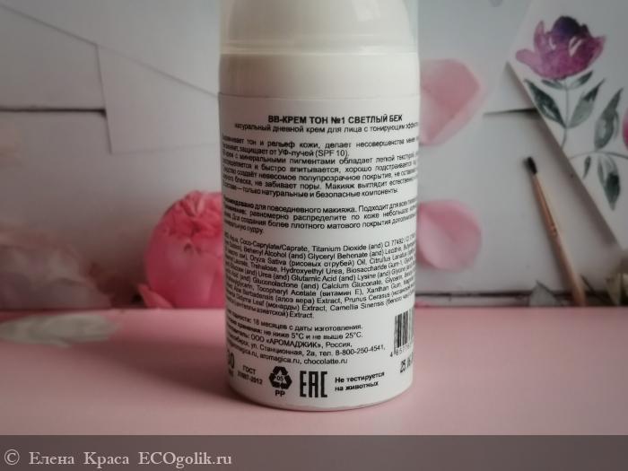 BB-крем с минеральными пигментами обладает легкой текстурой, равномерно распределяется и быстро впитывается, хорошо подстраивается под тон кожи. Средство создаёт невесомое полупрозрачное покрытие, не оставляет липкости и жирного блеска, не забивает поры. Макияж выглядит естественно и незаметно. В составе — только натуральные и безопасные компоненты.