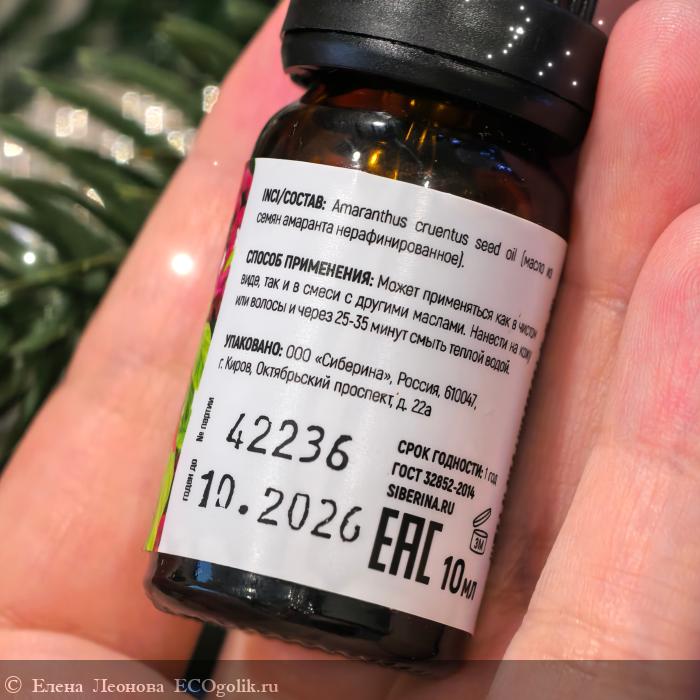 Подруга-экоголик подарила мне НАТУРАЛЬНОЕ МАСЛО АМАРАНТА от Siberina. Готова поделиться своими впечатлениями.