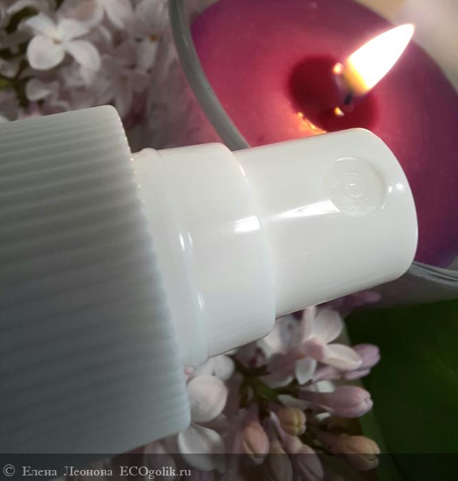 Флакон выполнен из прозрачного пластика. Мне нравится, что видно содержимое флакона. Внешне содержимое выглядит как свежайшие легчайшие деревенские сливки, которые только-только после сепарирования, еще тепленькие. Флакон оснащен удобным распылителем, который защищен пластиковым колпачком. Закрывается он плотно, до характерного щелчка. Дозатор не заедает, не плюется. Подача спрея плавная, мелкодисперсная. Информации на этикетках достаточно: подробное описание, способы применения, срок годности и условия хранения, состав.