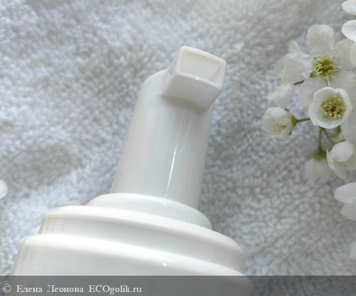 У пенки умеренный расход: одного нажатия хватает на все лицо. Текстура нежная, воздушная, как облачко, которая деликатно очищает кожу. Пузырьки невероятно приятно скользят по коже. Она становится шелковой, как лепестки роз. Помповый дозатор выдает нужное количество продукта, исключая подтекания и лишние прикосновения к флакону.