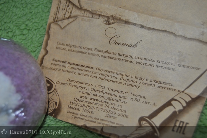Им оказался Бурлящий шарик для ванны от Savonry под названием Синильга(с маслами).
