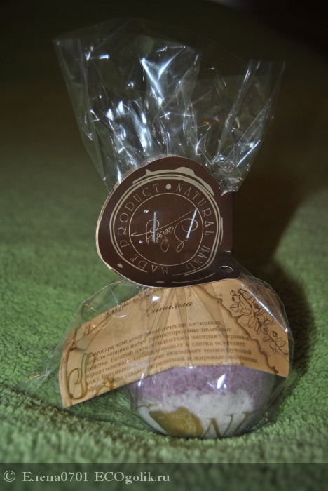 Упакован шар в пакетики в вакуумную пленку, внутри информация о составе, описание продукта.