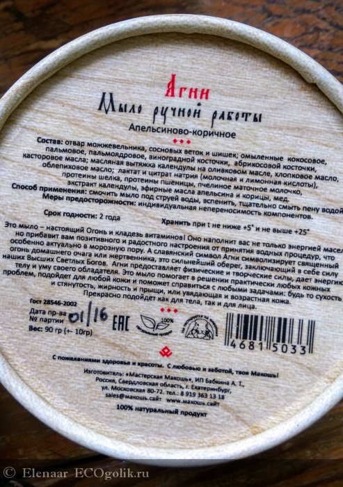Elenaar: Натуральное мыло с апельсином и корицей "Агни" Макошь