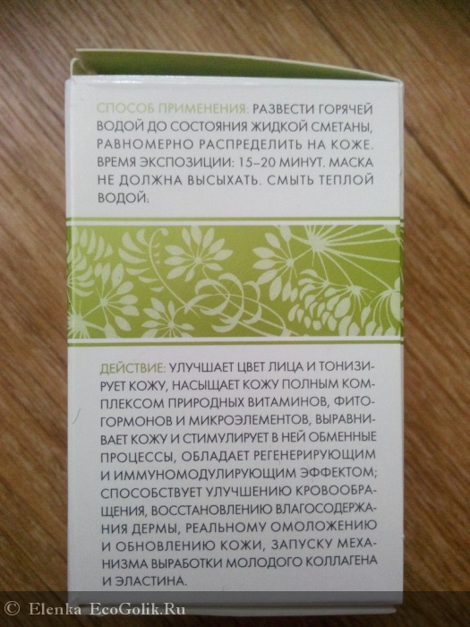 Сопосб применения. развести горячей водой до консистенции сметаны и нанести на кожу лица, шеи и декольте. Время воздействия 15-20 минут. затем смыть маску водой. Важно не давать маске высохнуть.