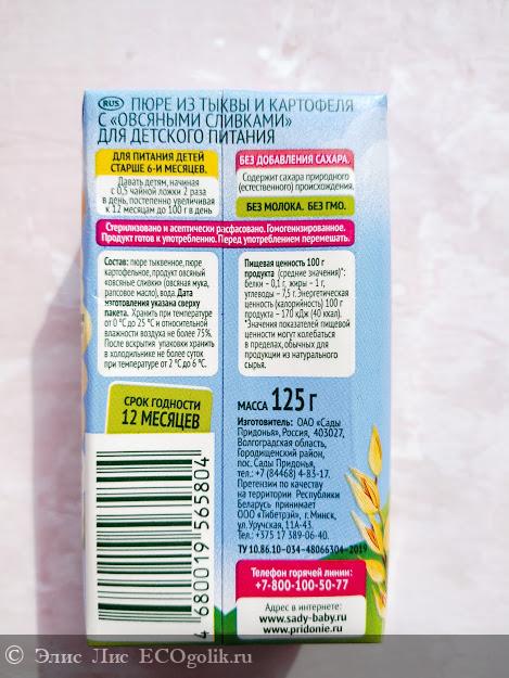 пюре тыквенное, пюре картофельное, продукт овсяный «овсяные сливки» (овсяная мука, рапсовое масло), вода.