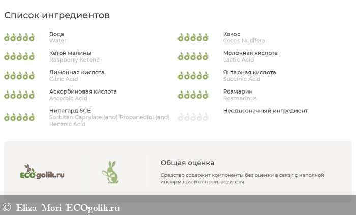 Экоголик не смог распознать все компоненты в составе, но и нежелательных не выявил.