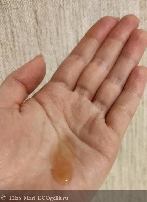Консистенция и цвет геля напоминают обычный гель для душа - средней густоты и оранжевого полупрозрачного оттенка.