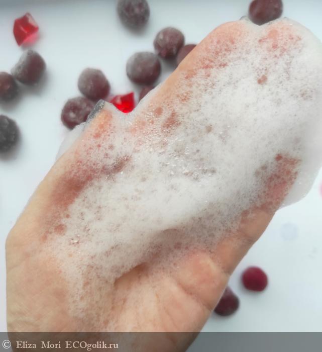 Во время использования кожа очищается мягко, без ощущения сухости или «скрипа». Пена нежная, аромат создаёт хорошее настроение и ощущение уюта.
