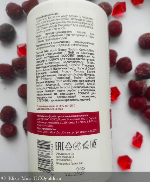 Eliza Mori: Аромат заботы и комфорта: гель для душа «Индекс натуральности. Спелая вишня»
