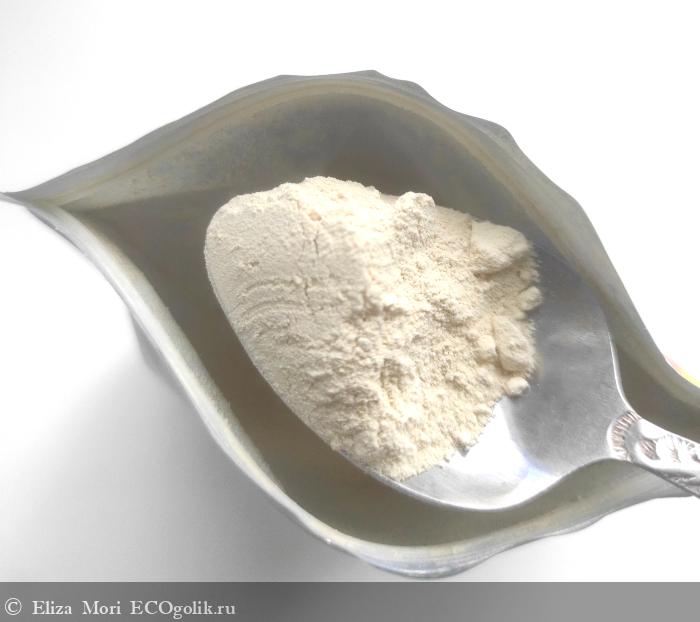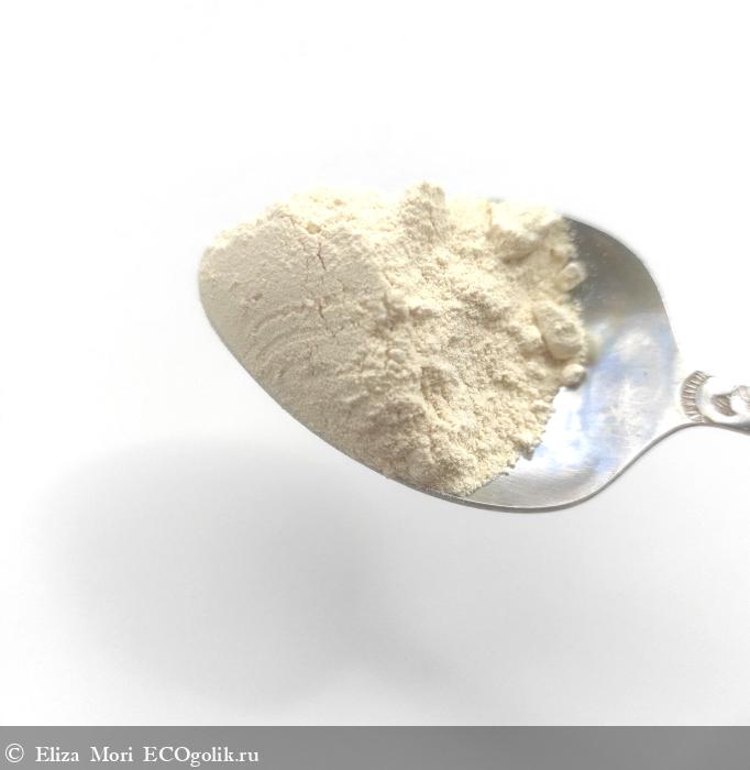 Порошок имеет светло-бежевый, слегка кремовый оттенок. Выглядит аккуратно и чисто, визуально ощущается натуральность продукта.