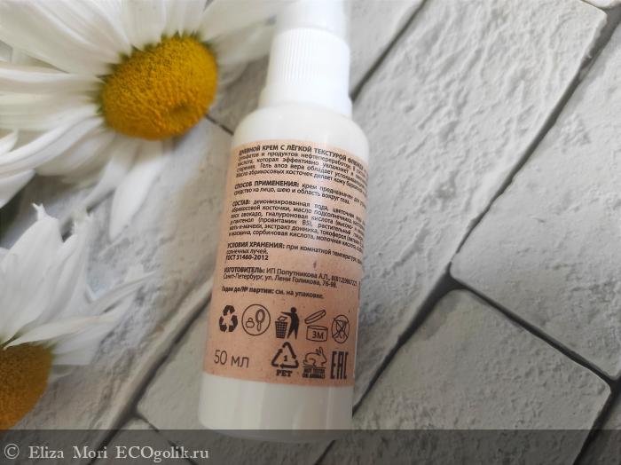 Дневной увлажняющий крем для лица и зоны вокруг глаз с легкой текстурой флюида не содержит силиконов, парабенов, сульфатов и продуктов нефтепереработки.
