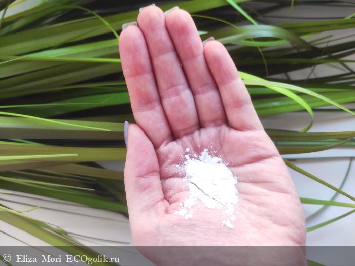 Форма упаковки тоже продумана: баночка оснащена широкой горловиной и удобной крышкой, которая плотно закрывается, предотвращая попадание влаги. Пудра выпускается в пластиковом флаконе объёмом 50 г.