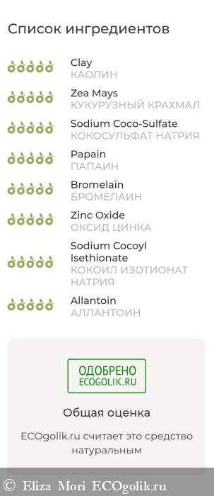 – мягкие ПАВ растительного происхождения: слегка пенятся и помогают лучше очистить кожу, разрешены в экокосметике.
