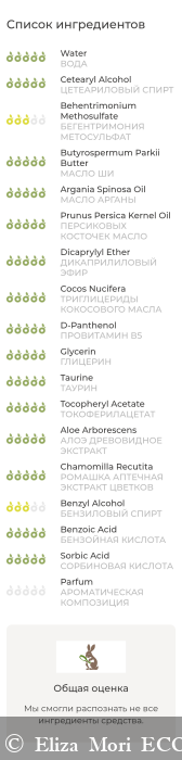 Формула средства радует обилием ухаживающих компонентов и отсутствием агрессивных добавок вроде силиконов и минеральных масел.