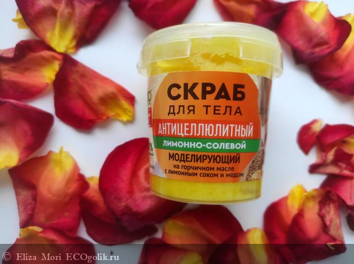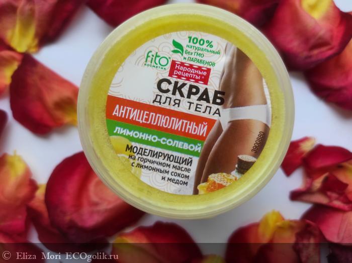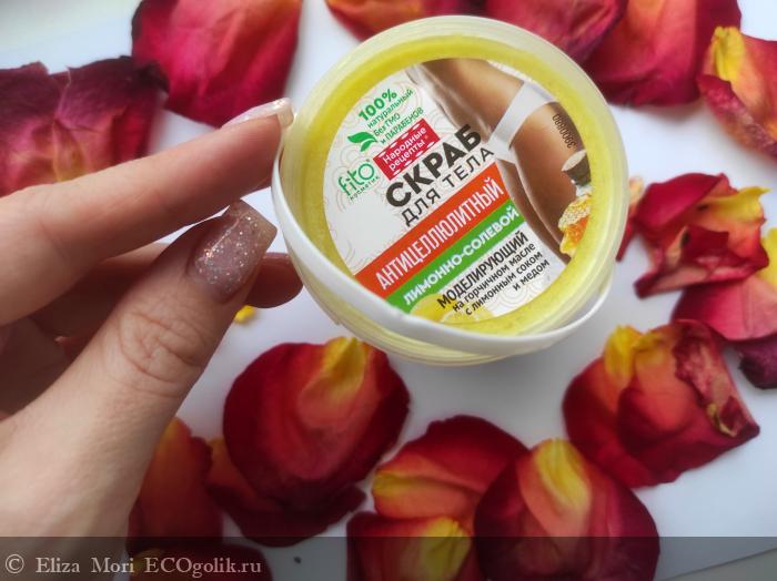 Сегодня хочу поделиться своим мнением и впечатлениями от использования антицеллюлитного лимонно-солевого моделирующего скраба для тела на горчичном масле с лимонным соком и мёдом fito косметик.