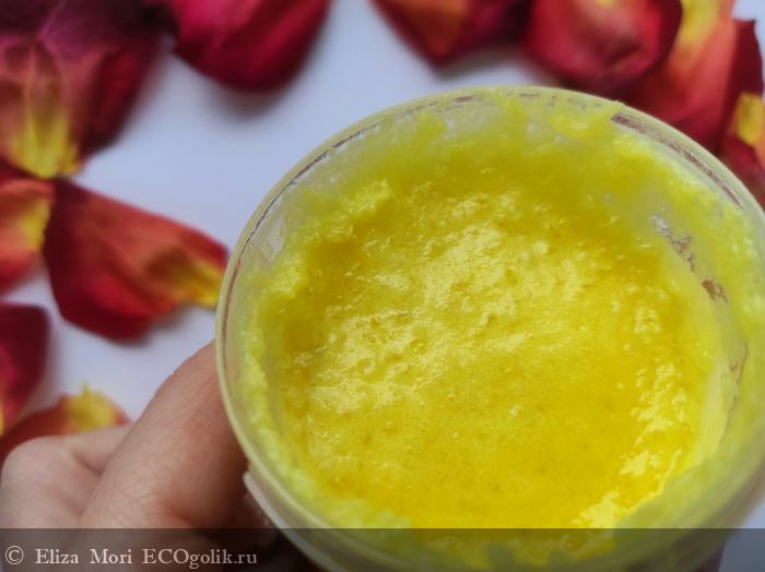 Цвет скраба — светло-жёлтый.