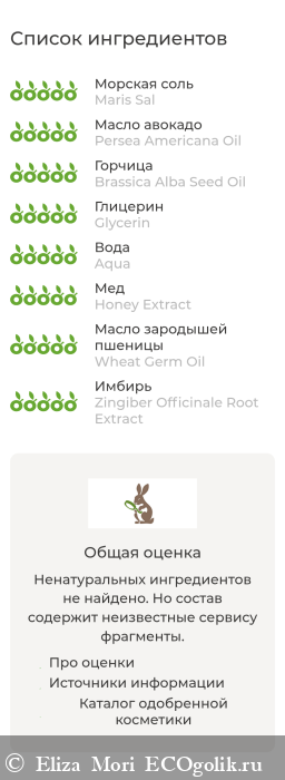 В целом состав неплохой, с большим количеством масел и экстрактов, но присутствует PEG и консервант, что может не подойти самым строгим эко-сторонникам.