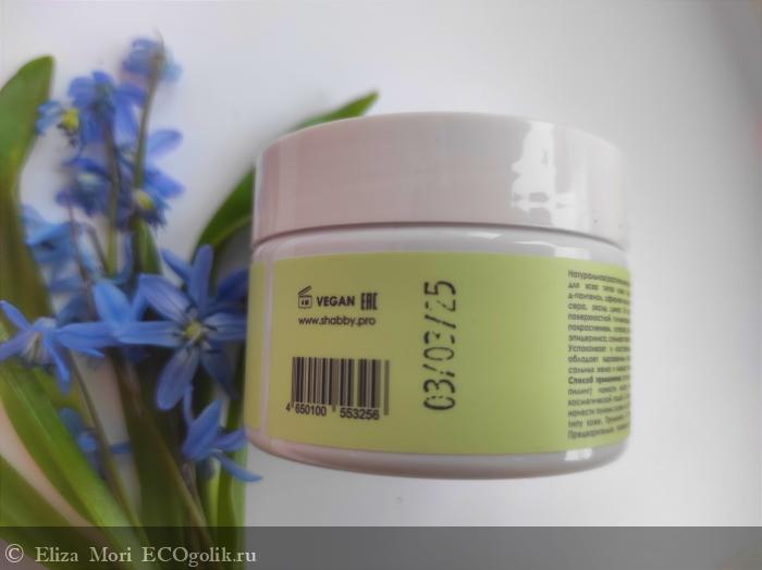 Цвет упаковки — светлый, спокойный, с минималистичным и чистым оформлением. Наклейка на баночке ярко-салатового цвета с подробной информацией о составе и способе применения.