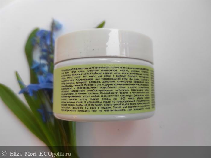- Маска прекрасно успокаивает раздраженную кожу, быстро снимает покраснения и уменьшает воспаления.