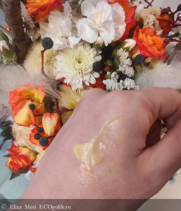 Она легко распределяется по сухим прядям, не течёт и не оставляет жирной плёнки. При нанесении волосы словно сразу начинают впитывать питательные вещества, их структура начинает мягко разглаживаться.