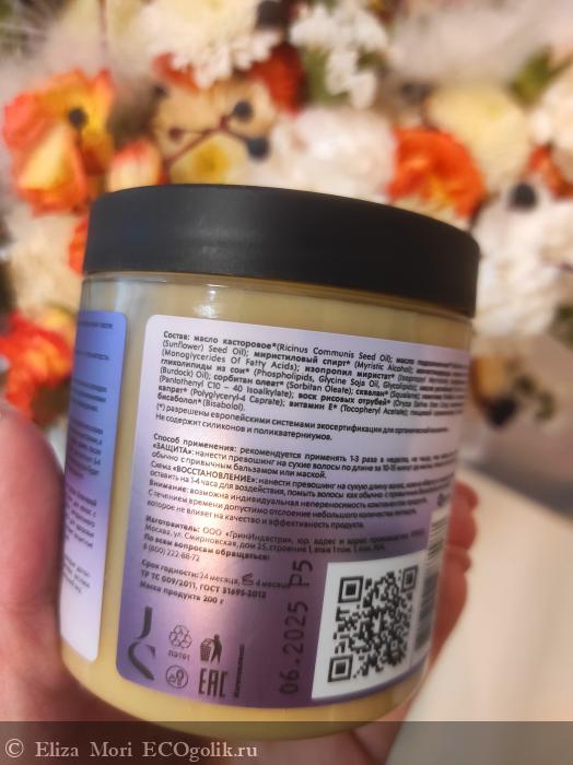 Все ингредиенты работают комплексно, восстанавливая волосы изнутри и снаружи, защищают от ломкости, возвращают блеск, мягкость и шелковистость.