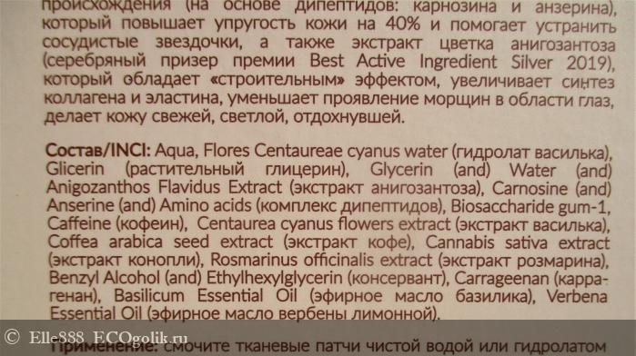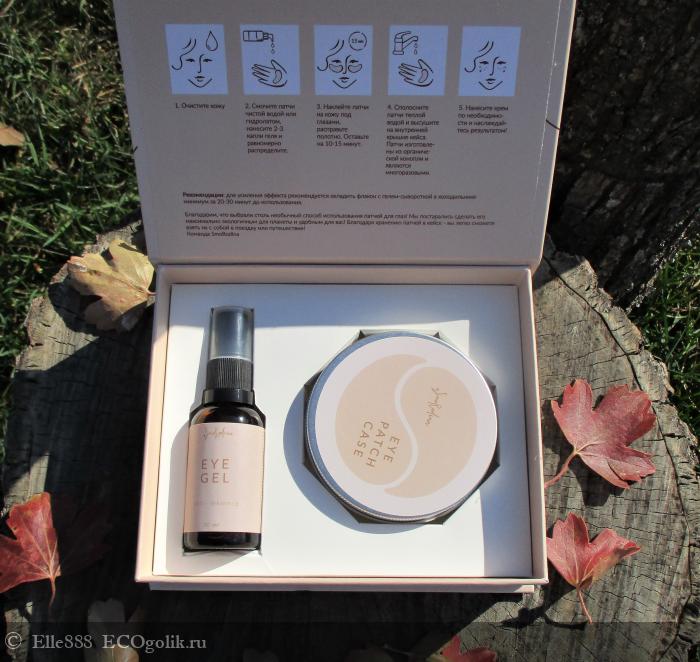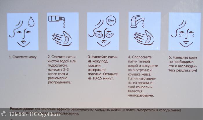 Перед применением, я, согласно инструкции смачиваю патчи гидролатом и наношу гель из набора: