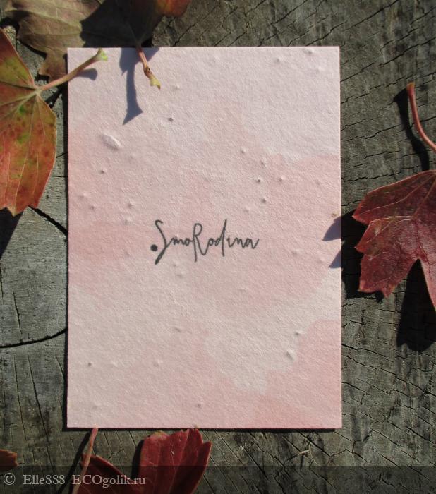 Отдельно мне хотелось бы рассказать о замечательной эко-инициативе бренда. В Smorodina отказались от объемных бумажных буклетов, отдав предпочтение минималистичной открытке для клиентов.